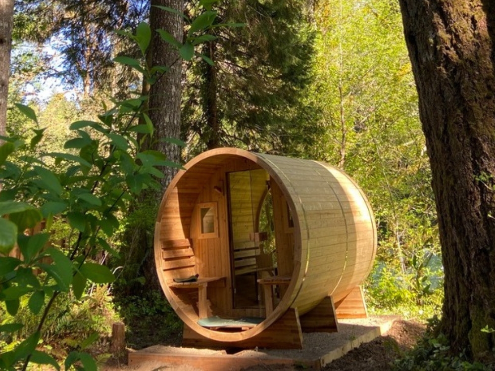 Try a natural cold plunge in the river before retreating to the steamy warmth of the panorama wood sauna or the jacuzzi tub